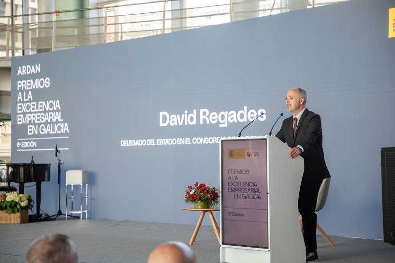 O Delegado do Estado na Zona Franca de Vigo, David Regades, abriu o acto de entrega de premios no Auditorio Mar de Vigo ás empresas con máis indicadores, no que tamén se concedeu un premio especial á traxectoria empresarial ao Grupo Zendal