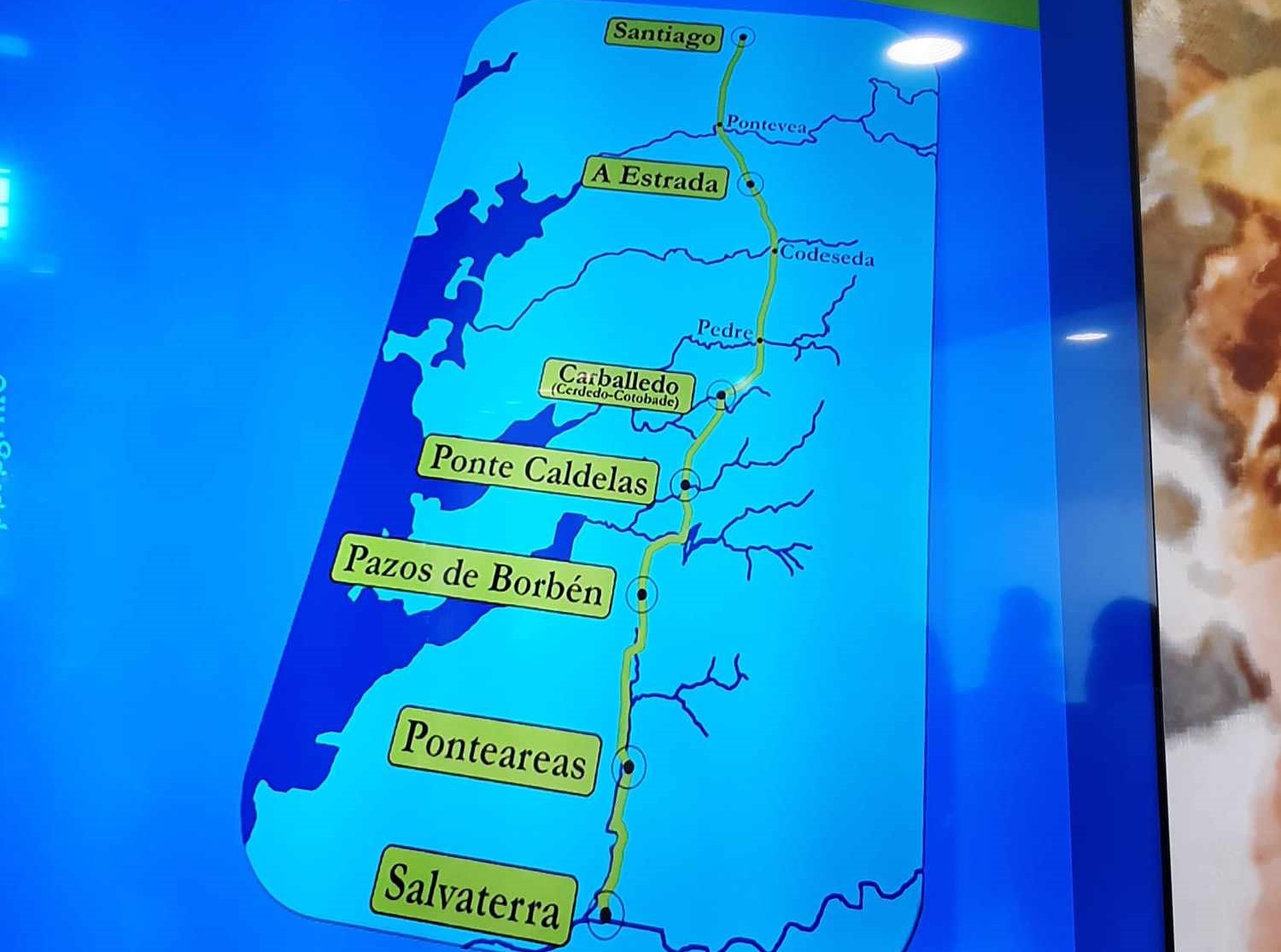 O camiño conta con 5 etapas entre Salvaterra e Compostela, cun total de 130 quilómetros e nos últimos dous anos foi percorrido por máis de 200 persoas, tanto a pé como a cabalo e en bicicleta. A primeira destas etapas, de 24 km, arranca en Salvaterra e transcorre ata Padróns (Ponteareas), á que segue unha segunda de 26 km desde este lugar a Ponte Caldelas. A partir deste punto continúa nunha terceira etapa de 25 km ata Pedre (Cerdedo-Cotobade), a cuarta (24km) entre Pedre e A Estrada e por último, desde este concello sae a quinta etapa, de 31km cara a Santiago.