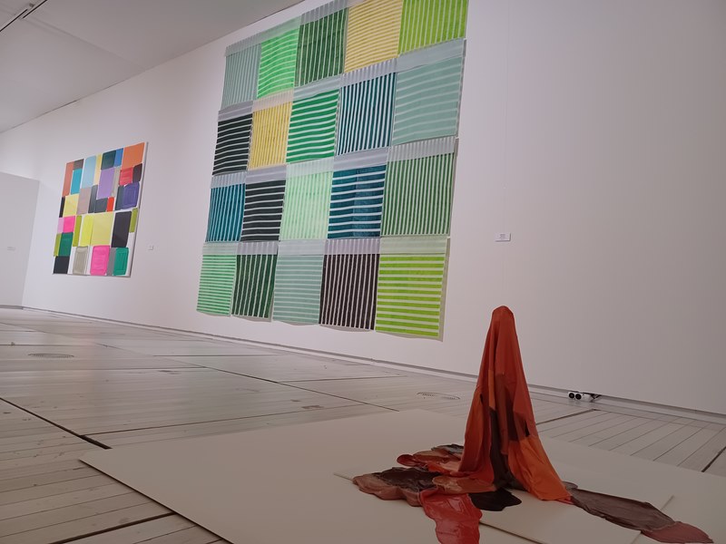 A obra exposta fórmana creacións dos últimos anos, coa excepción de dúas pinturas de Berta Cáccamo, artista e profesora de Belas Artes falecida en 2018. Os seus lenzos, datados en 1984 e 1986, están situados no espazo central da sala. Ao seu redor sitúanse a fotografía de Carmen Lage, as indagacións de formas e texturas de Ignacio Pérez-Jofre e Carlos Fer e as grandes composicións pictóricas de Elena Fernández Prada e Teresa Pajares.