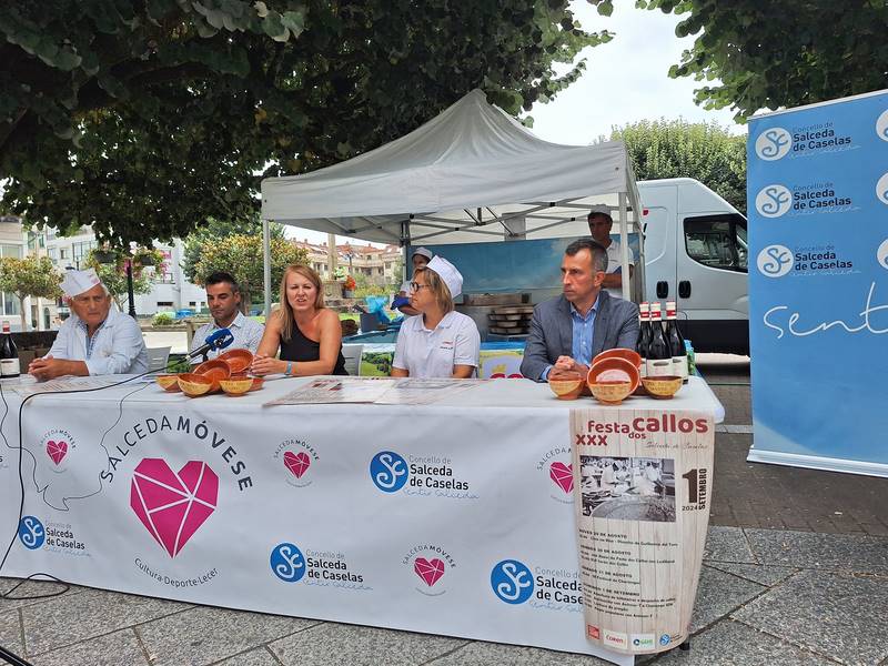 A Praza do Concello de Salceda serviu esta mañá de escenario de presentación da XXX edición da Festa dos Callos, acto no que non podía faltar a degustación para tódalas persoas que quixeron achegarse. O Concelleiro de Cultura, Alex Rodríguez, fixo un repaso pola programación da fin e semana, que se estenderá dende o xoves 29 de agosto ata o domingo 1 de setembro, día grande da festa, que este ano contará con Marta Doviro como pregoeira. O Concelleiro quixo agradecer a tódolos colectivos que fan posible a festa, e destacou ademais o proxecto que compartirán diferentes comisións parroquiais, que se encargarán da xestión de diversos espazos de aparcamento, optimizando deste xeito os espazos e podendo ofrecer máis de 3.000 prazas en pleno casco urbano.