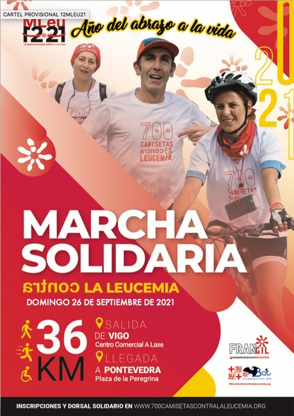 Máis de 500 persoas, camiñantes corredores e membros de Discamino, reuniranse este próximo domingo, 26 de setembro, en Vigo para camiñar pola vida na marcha «700 camisetas contra a leucemia», ao longo de 36 quilómetros ata chegar ao seu destino na cidade de Pontevedra. Esta iniciativa solidaria, que cumpre xa doce edicións, ten como obxectivo sensibilizar e informar á sociedade sobre a importancia da doazón de medula ósea e de sangue do cordón umbilical.