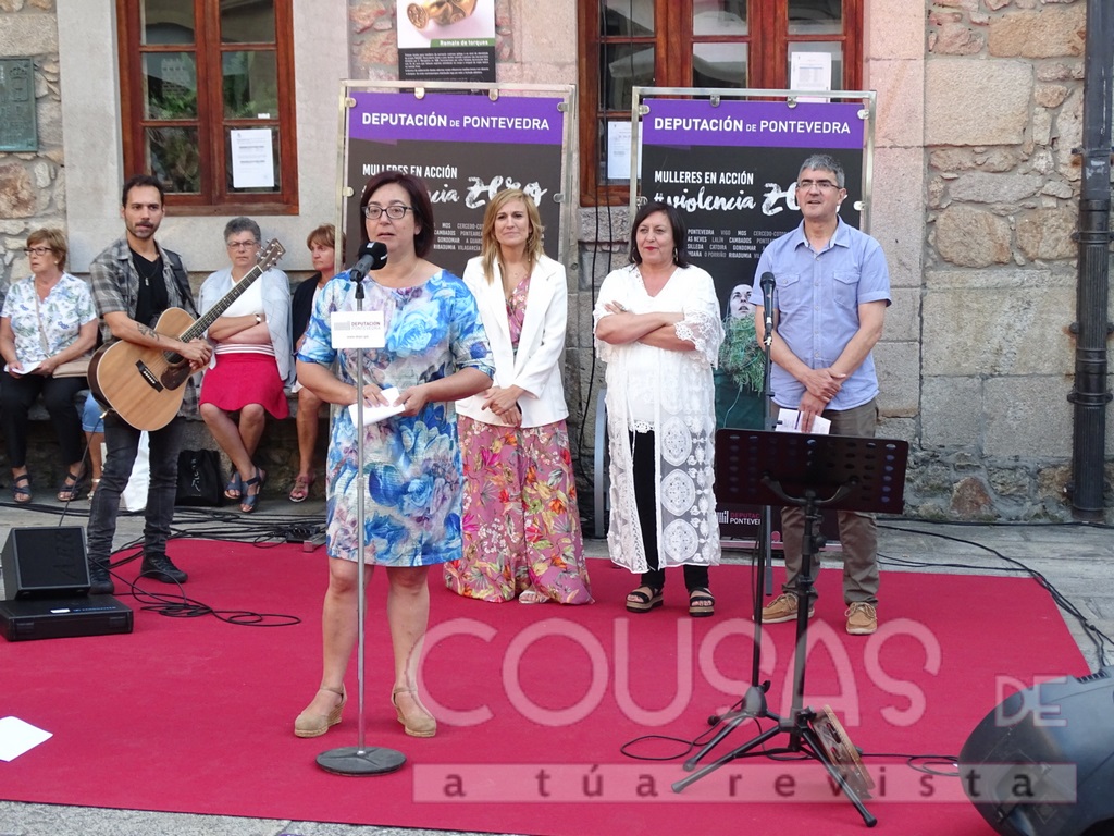 A deputada provincial de Emprego, Montse Magallanes, e o alcalde da Guarda, Antonio Lomba Baz, asistiron á décimo sétima intervención artística do programa “Mulleres en Acción. Violencia Zero” que se celebrou, onte ás 21.00 horas, na Praza do Reló da Guarda. Esta iniciativa da Deputación de Pontevedra ten por obxectivo darlle visibilidade ás violencias machistas, así como dar a coñecer a novas artistas contemporáneas que están a traballar a prol da igualdade.