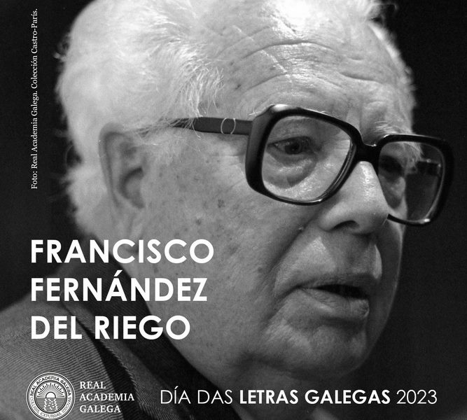 A Real Academia Galega dedicaralle o Día das Letras Galegas 2023 a Francisco Fernández del Riego (Vilanova de Lourenzá, 1913 – Vigo, 2010). O pleno da institución, reunido hoxe en sesión ordinaria, acordou homenaxealo o vindeiro 17 de maio, cadrando coa celebración do sesenta aniversario do primeiro Día das Letras Galegas, do que foi inspirador, e os cento dez anos do seu nacemento.
