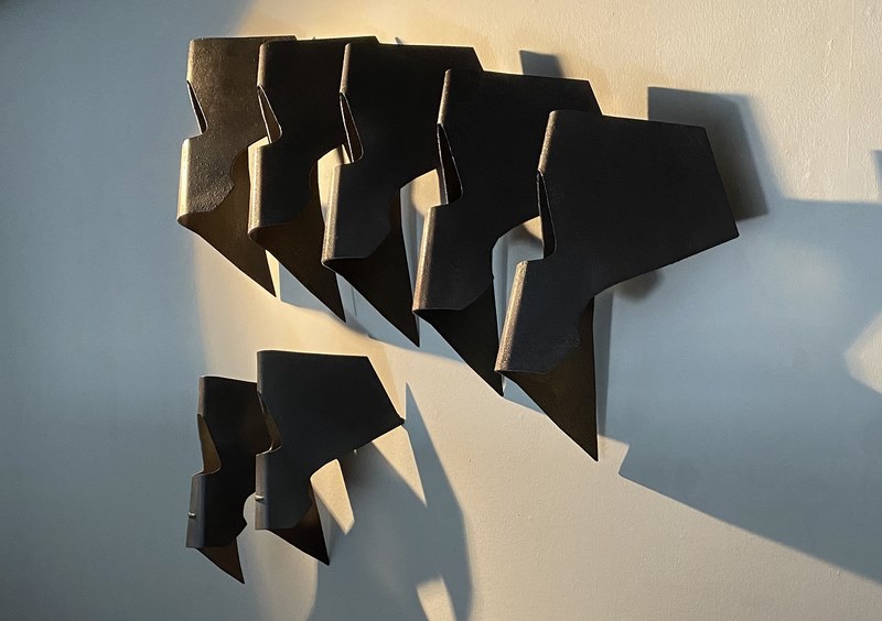A mostra, que estará aberta ata o 22 de abril, inclúe sete obras que forman parte da colección persoal da artista que representan á perfección o diálogo entre xeometría, figuración e abstracción que tanto caracteriza a traxectoria de Penalta. Pezas que mesturan abstracción e figuración como “Bosque” ou outras que coas finas láminas de metal que a compoñen mesmo fan cantar ao aire como “Asubíos do vento”. Estas pezas, xunto a dous “S/T”, “Distopía”, “Germinal e “Diacronía”, conforman a exposición na sede de Vigo, todas elas elaboradas en chapa de ferro, aceiro cortén, aceiro inoxidable, ferro e de gran formato, soldadas e manuscritas.