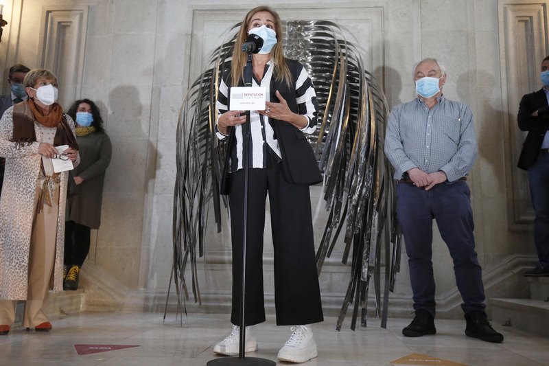 A vangardista aperta da escultora Soledad Penalta destinada aos concellos e á veciñanza da provincia ocupa dende hoxe o emblemático espazo da escalinata interior central do Pazo da Deputación. “Esta escultura representa o mellor da sociedade” asegurou a presidenta Carmela Silva no acto de inauguración da obra ao referirse a que simboliza “un mundo local con inmensa capacidade de transformación” e racha coa histórica “preponderancia masculina nas institucións, amosando unha forma diferente de ver o mundo, a provincia e a Deputación que temos que construír, onde as mulleres ocupen todo o espazo público”. O acto, que contou coa escenografía dun pano vermello que se descolgou para descubrir a obra, foi presidido por Carmela Silva, acompañada da propia artista Soledad Penalta, do vicepresidente, Cesar Mosquera, e das deputadas e deputados do goberno.