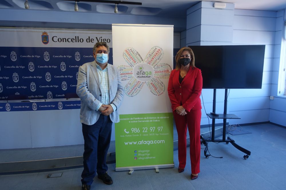 Juan Carlos Rodríguez, presidente da Asociación Afaga Alzhéimer, manifestou na rolda de prensa celebrada hoxe no Concello a necesidade dun protocolo sanitario para diagnosticar precozmente o deterioro cognitivo-funcional na poboación máis vulnerable, os maiores. “Dada a situación actual da demencia e coa situación que ocasionou a pandemia no deterioro cognitivo ,urximos un novo protocolo sanitario”. Pola súa banda, a concelleira de Políticas de Benestar, Yolanda Aguiar, indicou que “desde o o Concello de Vigo queremos aproveitar a celebración do Día Mundial do Alzhéimer para poñer en valor un novo modelo de cuidados das persoas maiores”. Neste sentido, engadiu que todos os programas e servizos que o Concello pon a disposición das persoas maiores: servizo de axuda no fogar (con máis de 1.200 usuarios), teleasistencia gratuíta (con máis de 800 usuarios), coidadores de barrio (con máis de 250 usuarios), envellecemento activo (con 2.100 usuarios), teñen como principal obxectivo o coidado centrado na persoa na procura da mellora da calidade de vida dos nosos maiores para que poidan gozar nos seus fogares de todos os servizos e prestacións. Na súa opinión, as residencias non deixan de supoñer un desarraigo para a persoa maior, que ten que abandonar o seu fogar e a súa contorna familiar, polo que, dende o Concello traballamos arreo para atrasar ese momento de ingreso nunha residencia.