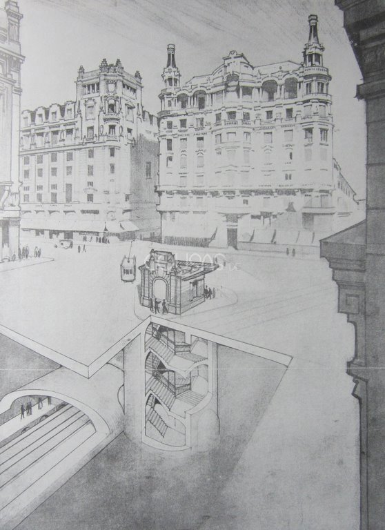 Antonio Palacios foi o creador dos deseños dos interiores e da estética das primeiras liñas do suburbano, da organización dos seus accesos e do logotipo do rombo de Metro, entre outros moitos traballos.