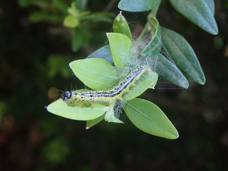 No que atinxe ao buxo, apreciouse un avance destacable dos síntomas da Cydalima perspectalis (bolboreta do buxo) nas sebes que non foran tratadas na finca de Areeiro, e tamén nunhas plantas nun xardín no percorrido feito esta semana. Por outra banda, na pequena poboación que mantén a EFA no seu laboratorio en condicións controladas para adiantarse á situación do exterior, xa hai crisálides e mesmo naceu a primeira bolboreta. Por iso Areeiro aconsella a revisión reiterada das plantas para localizar síntomas e eirugas e poder así optimizar o momento no que tratar.