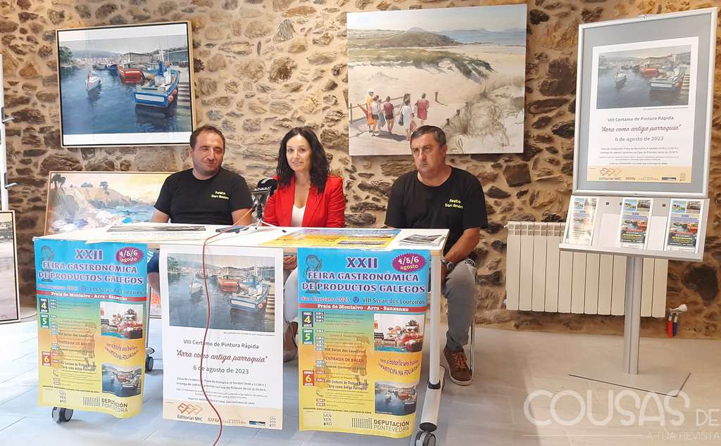 A parroquia de Arra (Sanxenxo), convértese esta fin de semana no epicentro de degustación de produtos típicos da gastronomía galega e da pintura ao aire libre coa XXII Feira Gastronómica de Produtos Galegos e o VIII Certame de Pintura Rápida. A concelleira de Cultura e Eventos, Elena Torres, e o presidente da Asociación Cultural San Cayetano de Arra, Bruno Vidal, presentaron ambas as citas esta mañá una das salas do Priorado de Arra. “É tamos encantados de colaborar cunha cita no que se dá unha maridaxe perfecta entre a degustación da gastronomía galega e a arte a través do certame de pintura”, explicou Torres. Unha cita que busca poñer en valor a riqueza paisaxística e cultural de Arra. Este ano contará ademais cun incremento dos premios en metálico cos que se superarán os 3.500 euros e xa se roza a trintena de rexistrados.