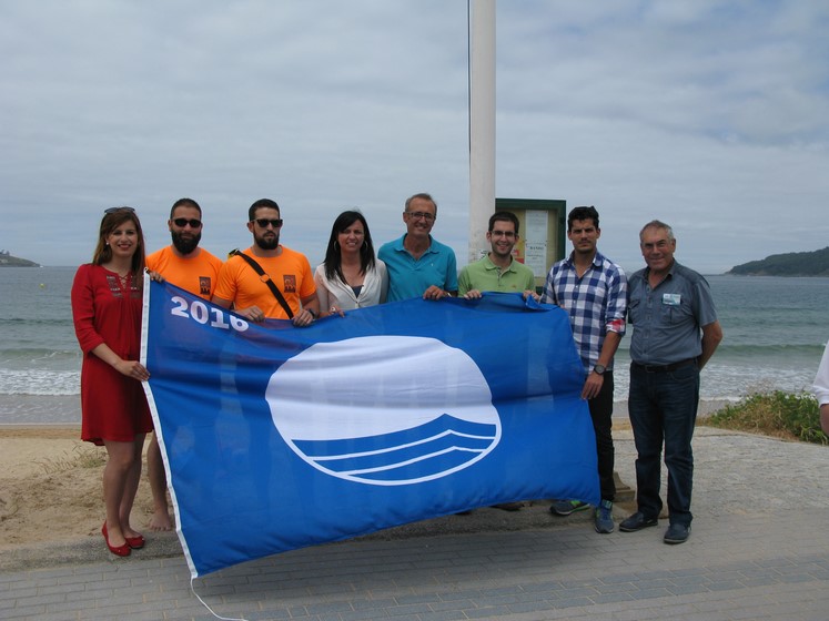 O Concello de Nigrán izou hoxe as bandeiras azuis nos areais de Patos e Praia América. Nesta praia ondea ininterrompidamente desde 1990.