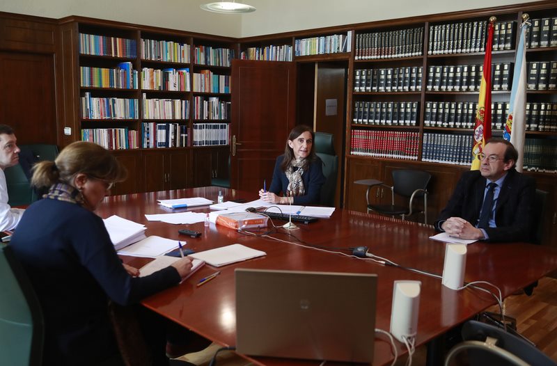 A conselleira de Educación, Universidade e Formación Profesional, Carmen Pomar, o secretario xeral de Universidades, José Alberto Díez de Castro, o director da Axencia para a Calidade do Sistema Universitario de Galicia (ACSUG), Eduardo López, e os reitores das tres universidades galegas, Antonio López (USC), Manuel Reigosa (UVigo) e Julio Abalde (UDC) reuníronse esta mañá por videoconferencia.