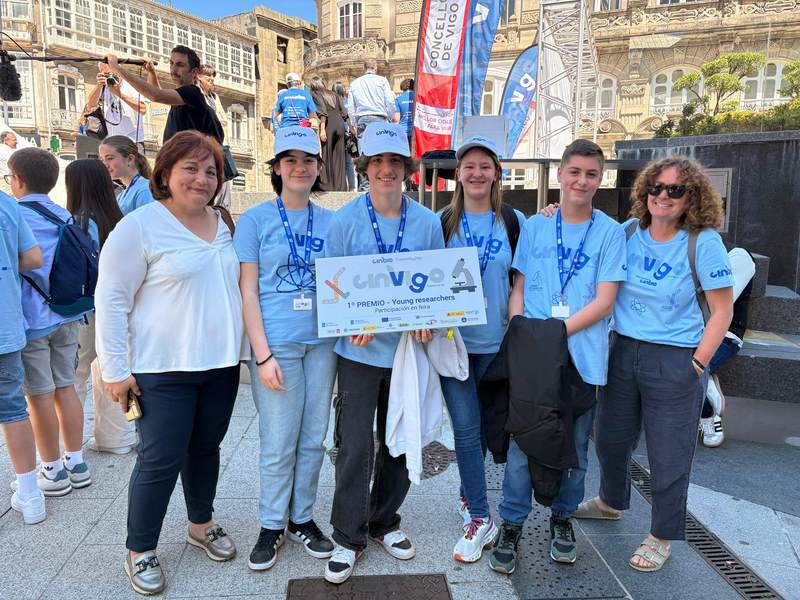 Saray Iglesias, Marta Riádigos, Andrea Estévez, Sofía Rodrígez, Jorge Sobrino y Lucas Bautista, alumnos e alumnas de 3º da ESO do IES Antón Alonso Ríos de Tomiño, conseguiron o primeiro premio na terceira edición da feira “CinVigo. Ciencia na Rúa”. Un evento organizado polo Cinbio (Centro de investigación da Universidade de Vigo) onde poden participar centros educativos con diferentes proxectos de investigación.