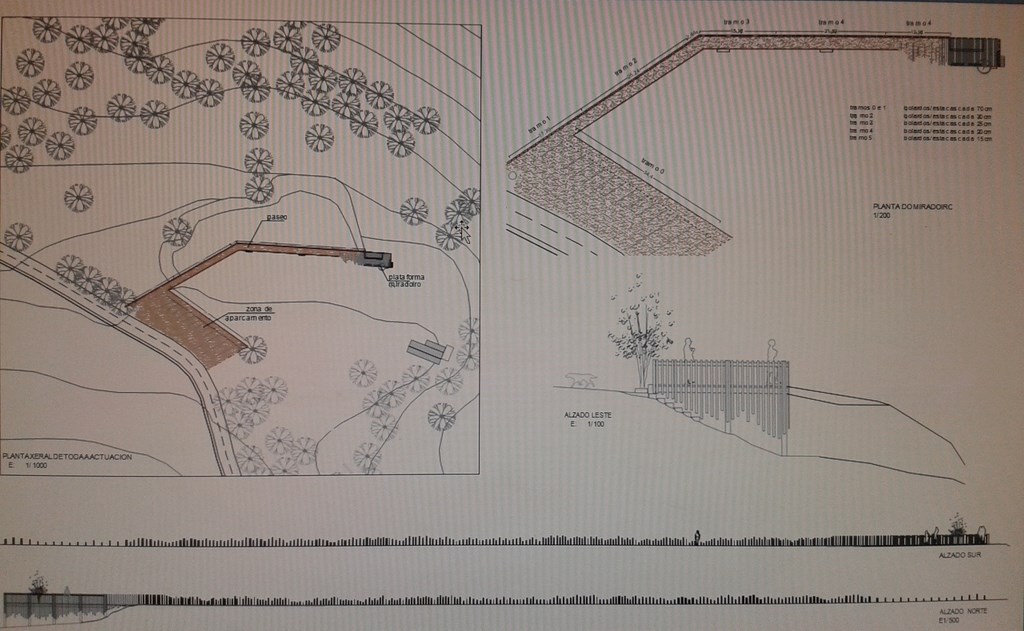 O plan conta con dous ámbitos de actuación: por unha banda o percorrido ou paseo desde o inicio da parcela, que mediante un crebo no mesmo dirixirá ao visitante ao longo de dúas direccións, e por outra banda o remate deste percorrido onde se situará o miradoiro, punto final no que o visitante se poderá sentar e contemplar as marabillosas vistas.