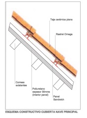 A obra consiste na impermeabilización e estanqueidad da cuberta da nave central e anexas, onde a mellora trátase de incluír un panel sándwich sobre as correas e cercha existentes e cubrilo con tézalas cerámicas actuais. Con respecto aos anexos, trátase de eliminar os ferros de fibrocemento (uralita) contribuíndo á mellora do medio ambiente.