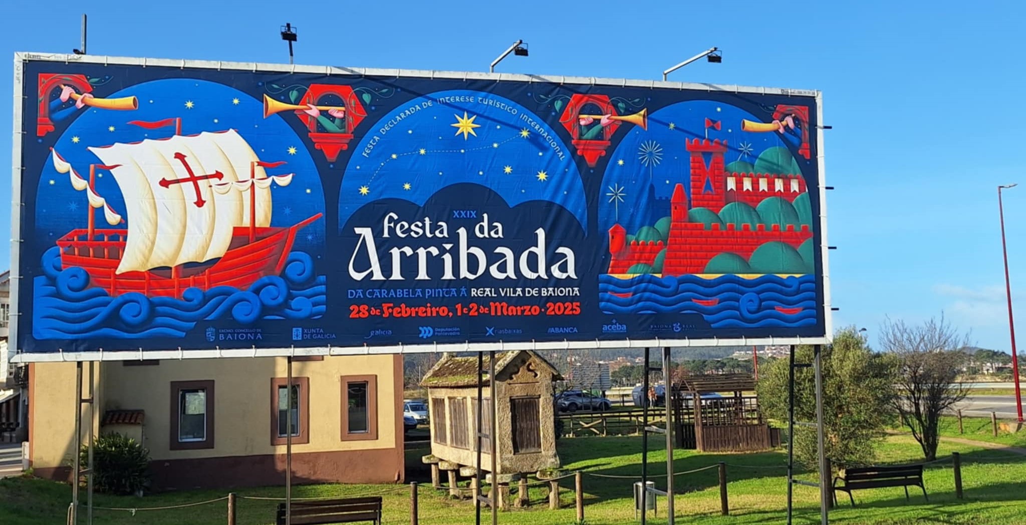 Segundo palabras do Alcalde de Baiona “a imaxe promocional da festa recolle a importancia do feito histórico que conmemoramos, do mesmo xeito que fixeramos o ano pasado. A Festa da Arribada non é unha festa sen máis, é unha festa motivada por un gran contido histórico que fala dun feito que cambiou o rumbo da humanidade e que puxo ao noso municipio nos mapas da historia. Para o rexedor “A protagonista é sen dúbida a Carabela pero no cartel vemos detalles que nos lembran a Baiona con elementos mariñeiros ou a ilustración da Fortaleza, pero que tamén falan do ambiente festivo que puido haber, hai 532 anos, ante a chegada de noticias novas dunha expedición sen precedentes e que, sen dúbida, ese ambiente festivo é o que teremos na próxima edición da Arribada”.