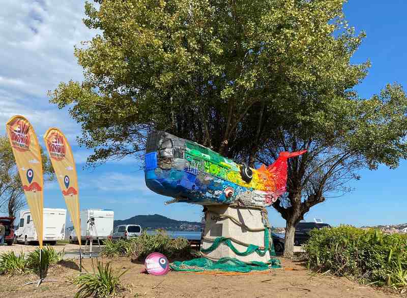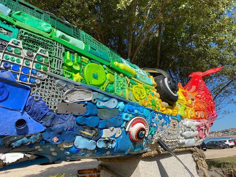 A escultura de máis de cinco metros de longo, realizada con residuos plásticos mariños, simboliza o compromiso do festival coa contorna e a sustentabilidade