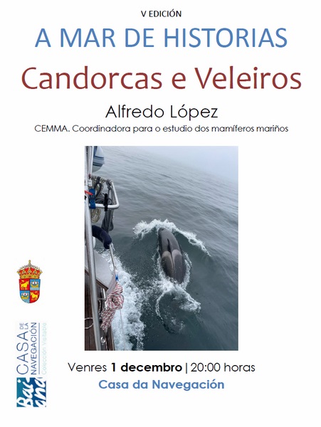 Este venres, 1 de decembro, ás 20:00h é a quenda do relatorio de Alfredo López, Coordinadora para ou Estudo dous Mamíferos Mariños Cemma: “Candorcas e Veleiros”.