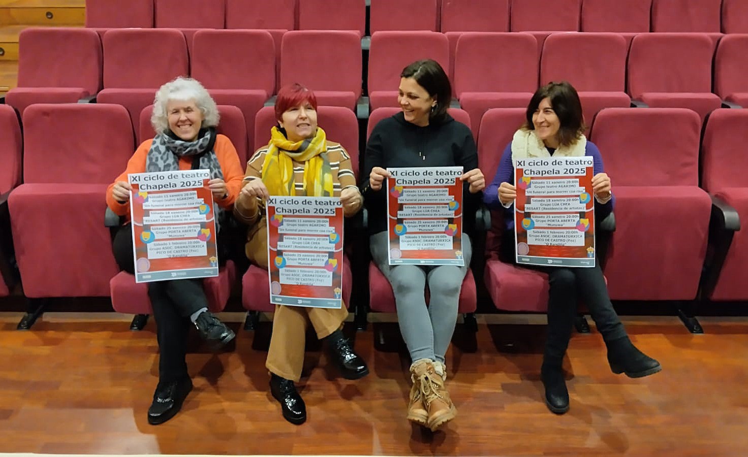 Redondela, 8 de xaneiro de 2024. A Asociación Cultural e Social de Chapela e o Concello de Redondela presentan un ano máis o ciclo de teatro afeccionado de Chapela. Este ciclo, que cada mes de xaneiro é cita obrigada no auditorio do Piñeiral do Crego, chega xa á súa 11ª edición. A concelleira de Cultura, Rita Pérez Táboas, sinala que esta programación teatral permite ampliar a oferta cultural á parroquia de Chapela con catro funcións os sábados días 11, 18 e 25 de xaneiro e o sábado 1 de febreiro.