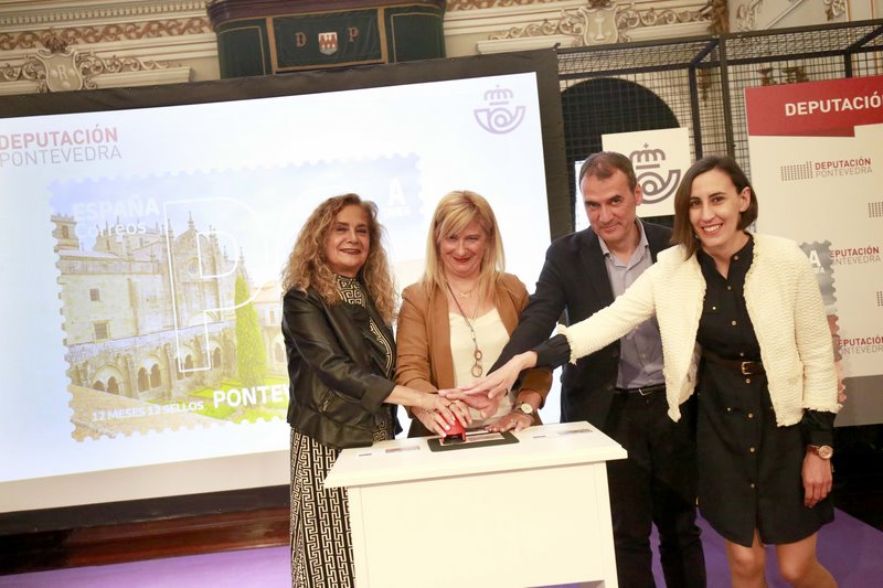 A peza, que conta cunha tirada de 215.000 exemplares, foi presentada no Salón de Plenos da Deputación nun acto ao que acudiron a presidenta provincial, Carmela Silva, a directora de Relacións Institucionais e Filatelia de Correos, Leire Díez, e o alcalde de Tui, Enrique Cabaleiro, que realizaron deforma conxunta o cuño de honra deste selo baixo a mirada de representantes de Correos e da Federación Galega de Sociedades Filatélicas. Trala presentación, Leire Díez asinou o libro de honra da Deputación e foi agasallada coa escultura dunha camelia da artesá Ana Tenorio.