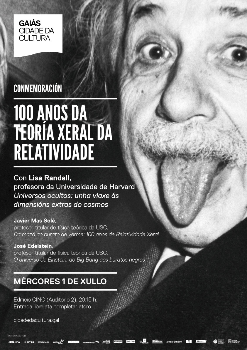 A consellería de Cultura, Educación e Ordenación Universitaria conmemora o vindeiro mércores, 1 de xullo, no Gaiás o centenario da teoría xeral da relatividade de Albert Einstein coa presenza da figura feminina máis importante da Física mundial: a profesora da Universidade de Harvard Lisa Randall.