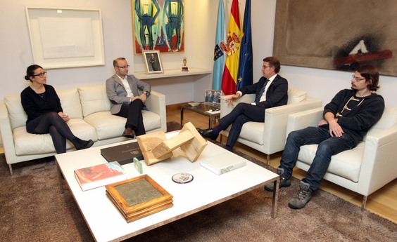 O presidente da Xunta, Alberto Núñez Feijóo, acompañado polo conselleiro de Economía, Emprego e Industria, Francisco Conde, mantivo hoxe un encontro tanto coa propia Ojea como con outros dos galegos tamén apoiados por bolsas Starting Grant do ERC: o físico de partículas Diego Martínez, e o químico molecular Javier Montenegro.