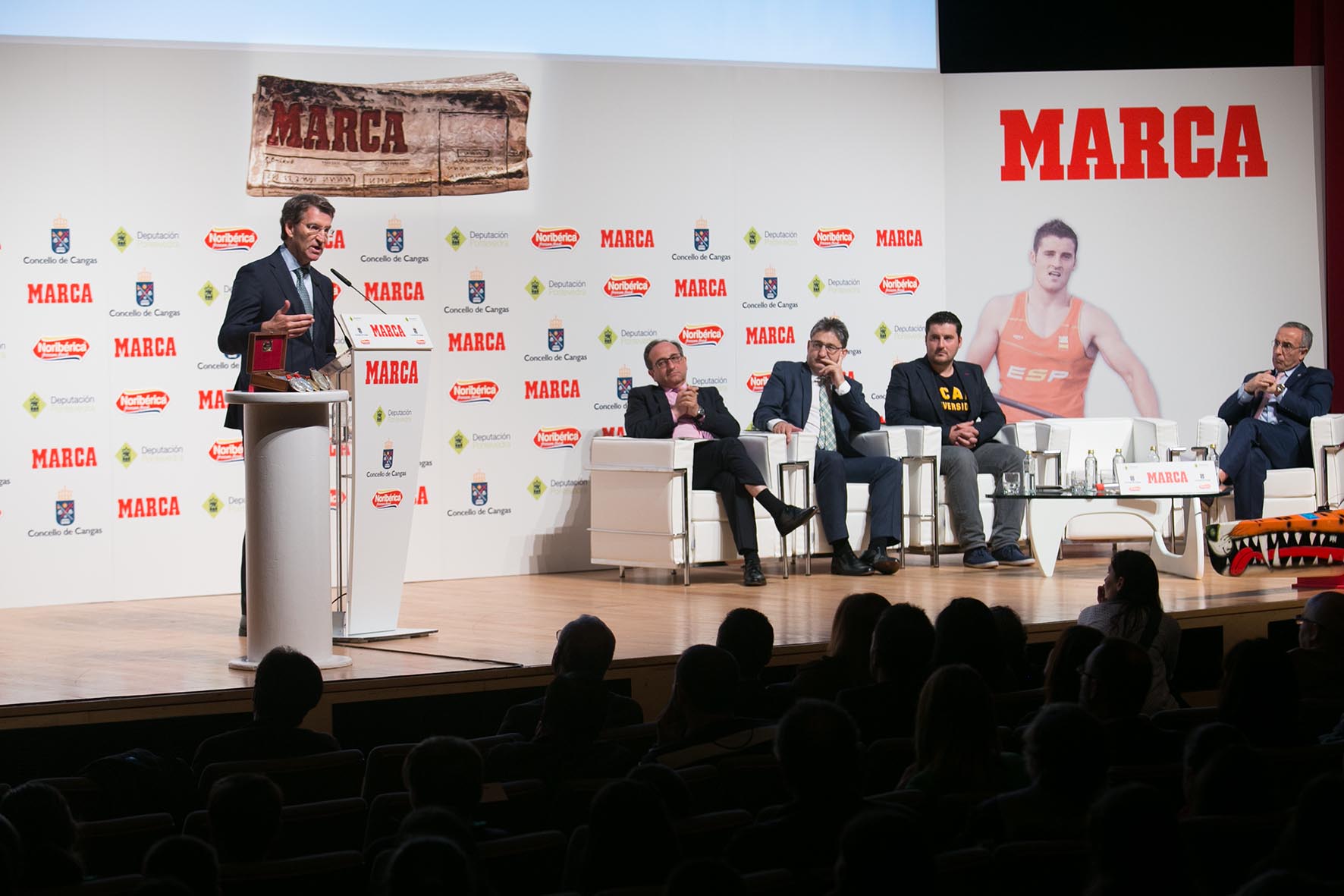 Durante a entrega do galardón MARCA leyenda ao deportista, Feijóo lembrou que os galegos celebramos co piragüista cangués cada un dos seus éxitos como se foran de todos: cinco medallas olímpicas, cinco no campionato mundial e outras cinco nos europeos.