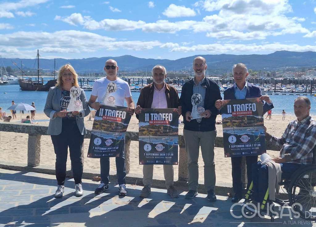 O Paseo Ribeira de Baiona acolleu esta mañá o acto de presentación que contou coa presenza de José Rial, Vicepresidente e Secretario do CB. Reconquista de Vigo, a concelleira de Deportes do Concello de Baiona, Ana María Iglesias , o concelleiro de Actividades Marítimas, Joaquín López, o concelleiro de Cultura, Policarpo Vilar, o xefe provincial do servizo de Deportes da Xunta, Daniel Benavides e o alcalde de Baiona, Jesús Vázquez Almuiña.