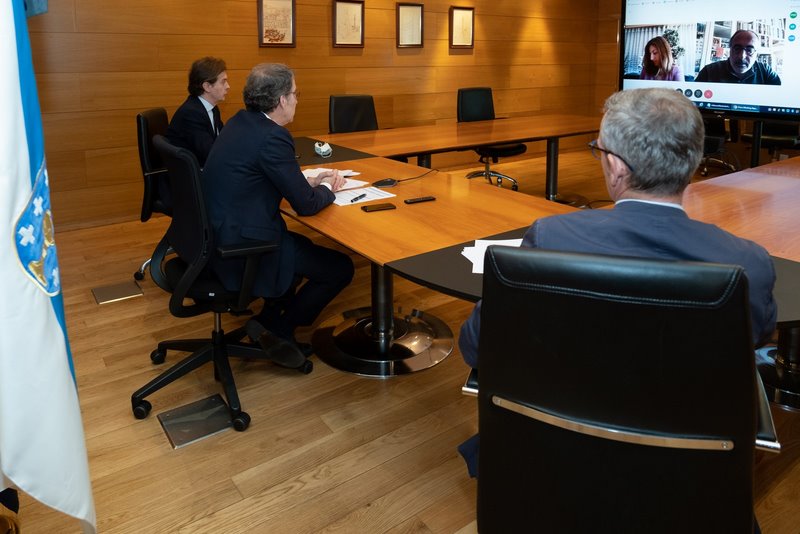 O presidente da Xunta, Alberto Núñez Feijóo, e o vicepresidente da Xunta, Alfonso Rueda, mantiveron hoxe unha xuntanza por videoconferencia co presidente da Comisión de Coordinación e Desenvolvemento Rexional do Norte de Portugal (CCDR-N), Fernando Freire de Sousa, para analizar as diferentes liñas de cooperación entre Galicia e o Norte de Portugal de cara a reactivar a economía na Eurorrexión.