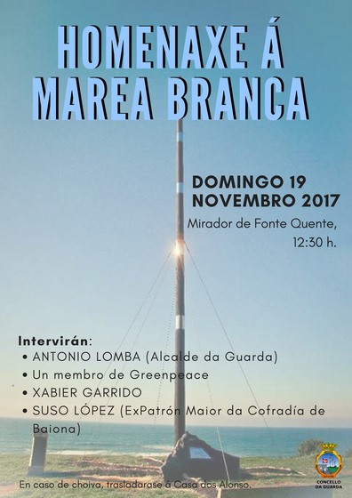 A homenaxe contará coas intervencións do alcalde do Concello da Guarda, Antonio Lomba; un membro da organización ecoloxista Greenpeace; o ex Patrón Maior da Confraría de Baiona e voluntario da Marea Branca, Suso López; e o creador do monumento e impulsor do acto de homenaxe, Xabier Garrido.