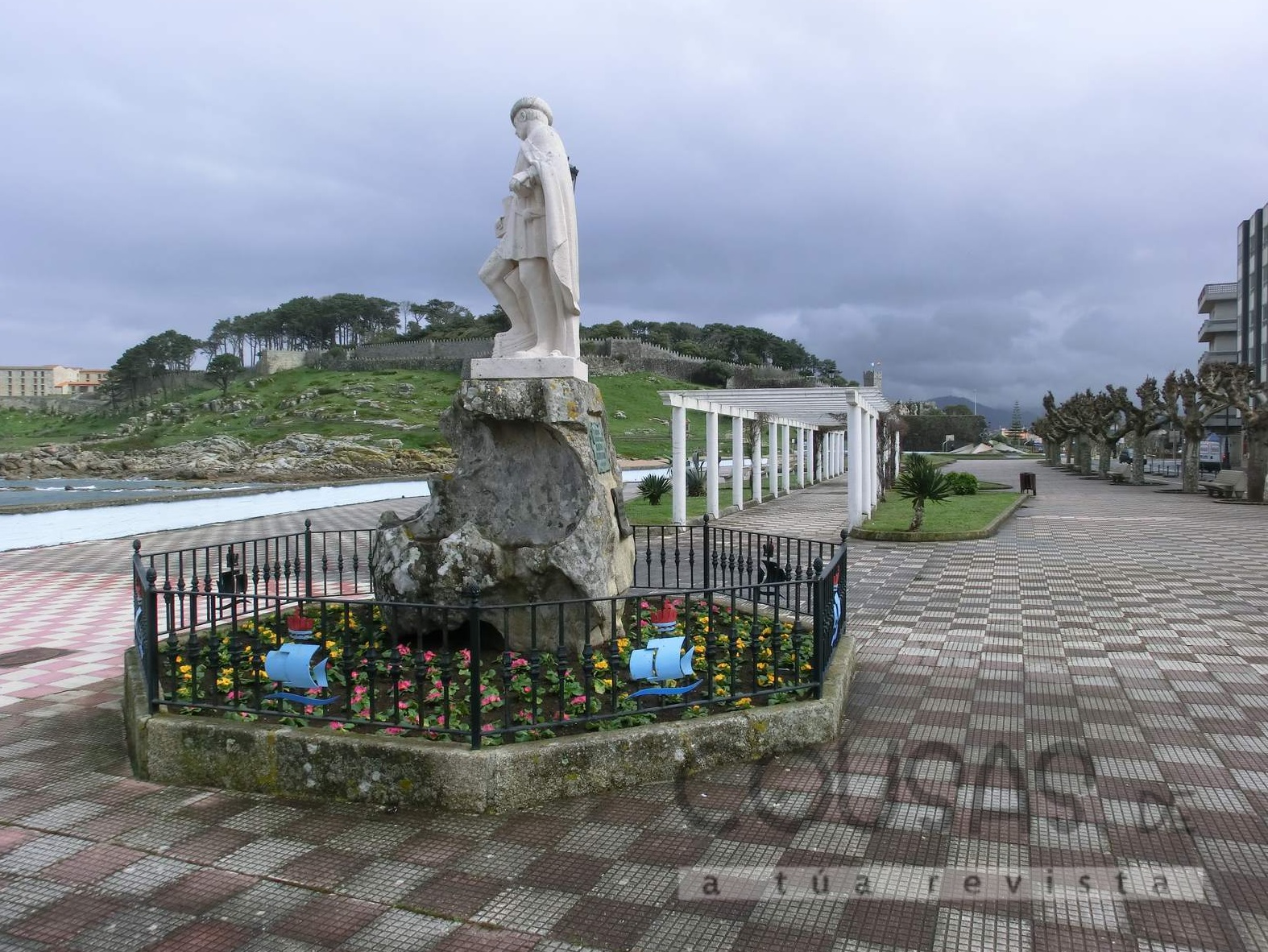 - Desde o p.q. 17+030 (glorieta) ao p.q. 17+700, deséñase polo lado do mar para o que se despraza o eixo da estrada, sendo preciso acondicionar as actuais calzada e beirarrúas, onde existen. Ademais, executaranse novas beirarrúas onde actualmente non existen.