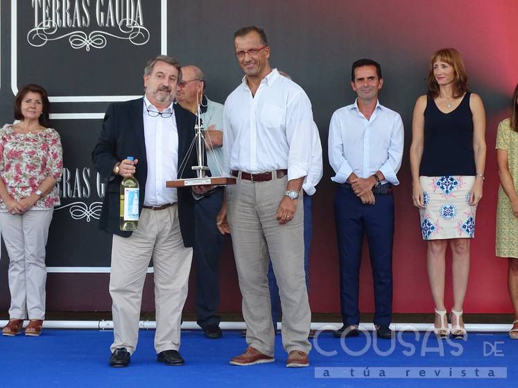 Fernando León, patrón do Maserati, foi o encargado de recoller, de mans da deputada delegada de deportes da Deputación de Pontevedra, Consolo Bicada, o premio outorgado ao barco de Porto Portals, armado por Álvaro Irala, como mellor barco ORC.