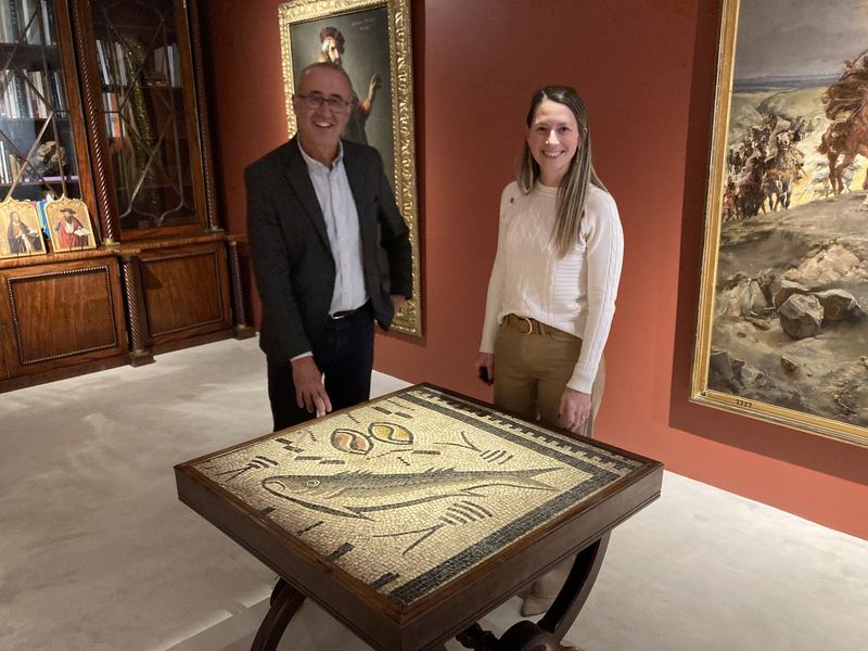A ‘perla’ arqueolóxica de Nigrán, o mosaico romano de Panxón, regresará para sempre a súa casa o 18 de xaneiro. Atrás queda unha epopea que comezou en xaneiro de 2022 na galería Carlton Hobbs de New York para embarcar cara a súa sucursal en Londres e permanecer na capital do Reino Unido máis dun ano paralizado pola burocracia extra do Brexit e, ao fin, chegar a Madrid o pasado 28 de novembro. Alí, na galería Colnaghi da capital, entre Sorollas, Zuloagas e un Caravaggio, permanece exposto antes de partir definitivamente para Nigrán na data acordada. O propio alcalde, Juan González, e a edil de Educación, Estela Pérez, o puideron ver in-situ esta semana aproveitando a súa viaxe para recoller o selo de Ciudad Amiga de la Infancia outorgado por Unicef. Segundo avanza o rexedor, esta xoia do século III d.C. será exposta provisionalmente na sala de usos múltiples do Muíño de Porto do Molle (acondicionarase con vixilancia e seguridade) e estará acompañada por unha musealización ao respecto realizada por Árbore Arqueoloxía. Despois buscaráselle unha ubicación definitiva.