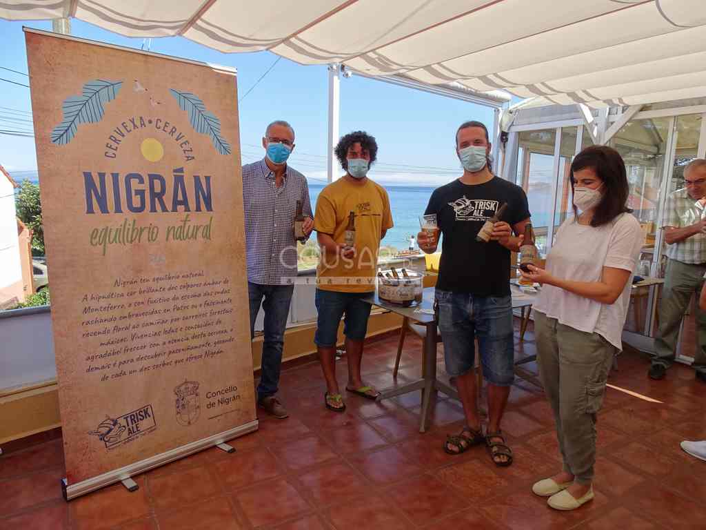 A gran novidade deste mes ven da man de cervexas ‘Trisk-ale’, firma miñorana fundada polos nigraneses Andrés e Roberto Toledano, responsables de elaborar e sacar ao mercado a cervexa promocional ‘Nigrán, equilibrio natural’, presentada hoxe no bar Praia D’Abra (rúa Cansadoura) e á venda xa en diferentes locais hostaleiros do municipio e tendas (ademais estará presente nos diferentes eventos organizados desde o Concello).