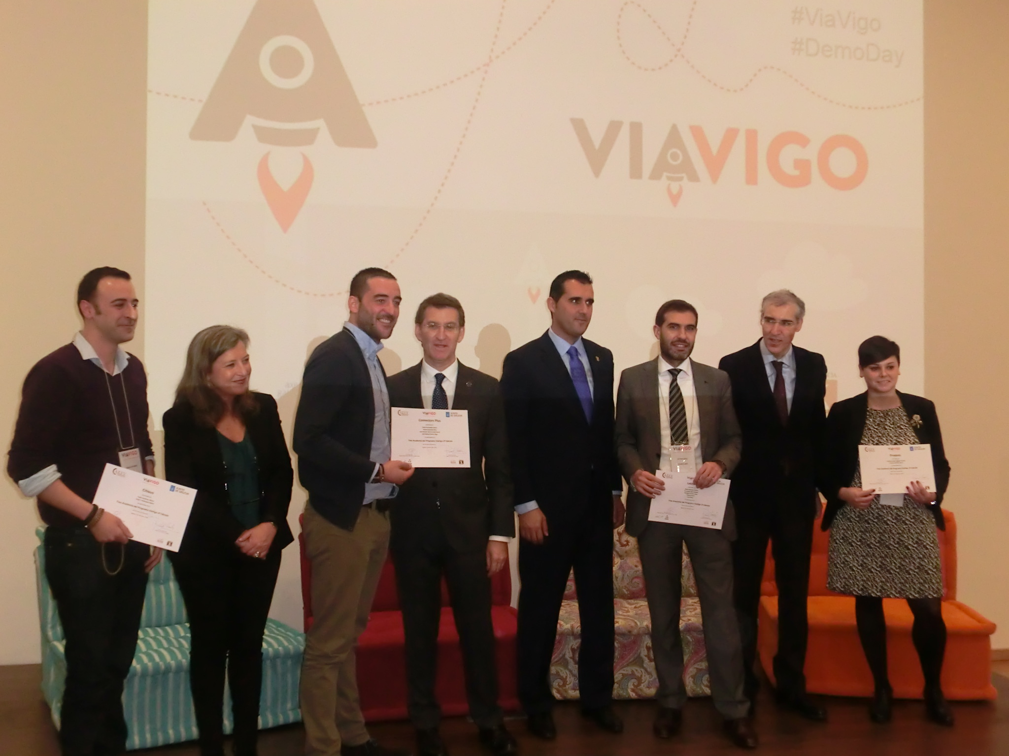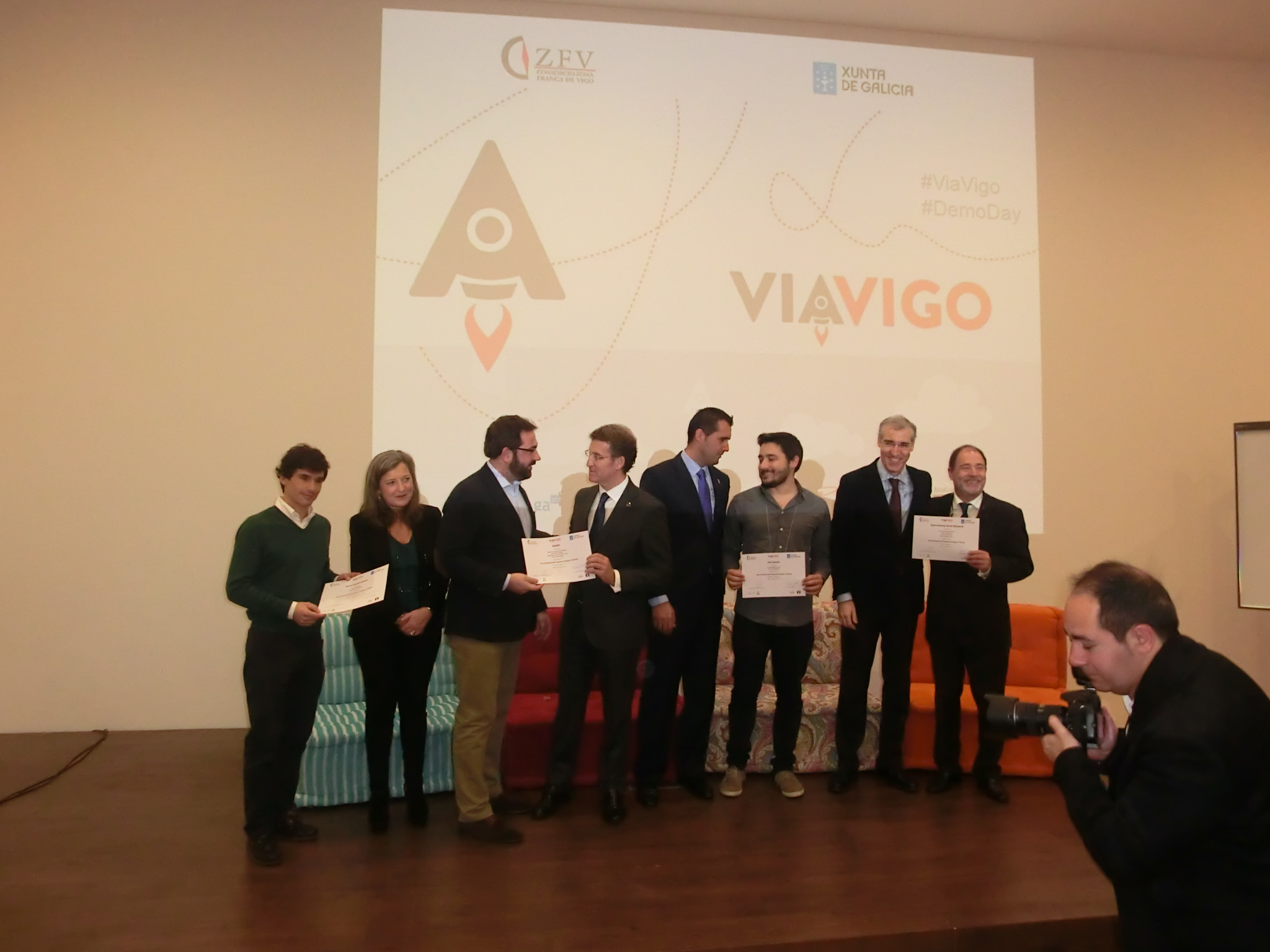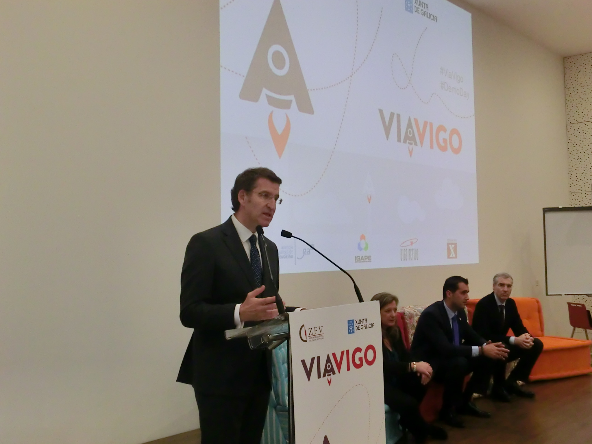 O Presidente veu acompañado do Conselleiro de Industria, Francisco Conde, e na visita tamén estiveron presentes, ademais do Alcalde de Nigrán, Alberto Valverde, o director xeral da Fundación Incyde, Javier Collado e o presidente da Cámara de Comercio de Vigo, García Costas. Todos estes organismos e institucións son copatrocinadores de distintos programas de apoio á creación de empresas. A Fundación Incyde e a Cámara participan no Innovation Start-up Vigo Camp e a Xunta a través das súas axencias, Gain, Igape e Xes Galicia, promove co Consorcio a aceleradora de empresas ViaVigo que xa está na súa segunda edición.