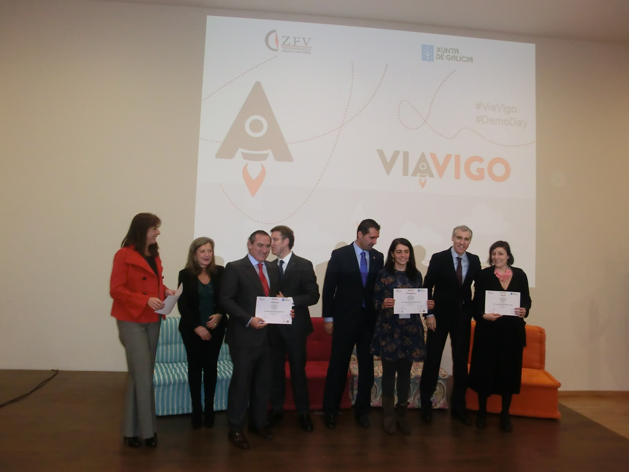 O presidente do Goberno galego destacou o traballo da Zona Franca de Vigo para desenvolver iniciativas como “ViaVigo”, na que tamén participa a Xunta, e avanzou o obxectivo de estender esta iniciativa a Lugo e Ourense, “para que tamén teñan o seu propio proxecto de aceleradora de empresas”. Non en van, resaltou que no Concello de Vigo creáronse 736 novas empresas en 2014, un 13,6% máis que en 2013; e, no conxunto da comarca, o incremento foi de case un 11%.