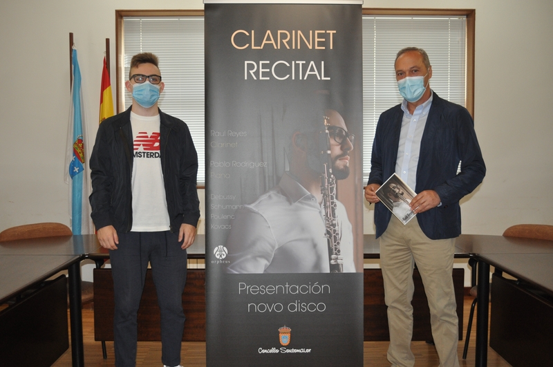 Acompañado do alcalde, Agustín Reguera, Raúl Reyes presento esta mañana no Concello de Soutomaior o seu primeiro disco, “ Clarinet Recital”.