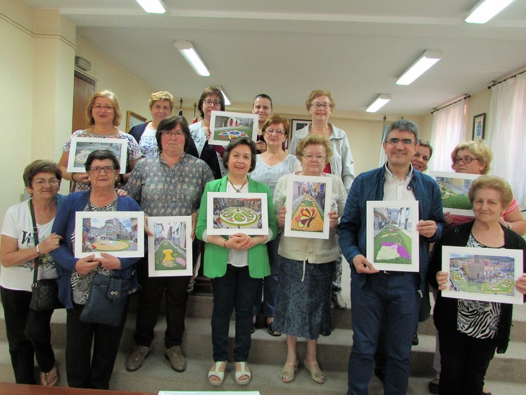 O alcalde da Guarda, Antonio Lomba e a Concelleira de Turismo, Montserrat Magallanes recibiron esta mañá, as 10,30h no Salón de Plenos do Concello da Guarda, ás veciñas que se encargan de confeccionar as alfombras florais pola Festividade do Santísimo.