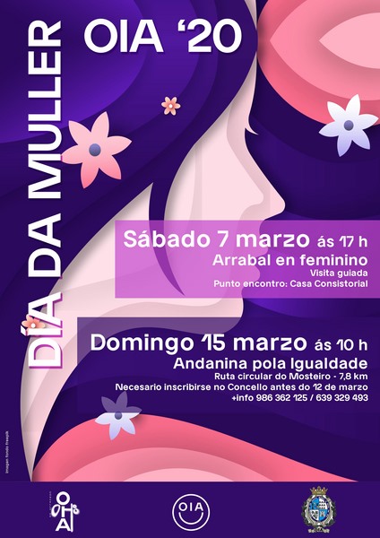 O Concello de Oia programará este ano 2 actividades para conmemorar e celebrar o Día da Muller. Este sábado haberá unha visita guiada de temática feminina, mentres que para o domingo 15 se organiza a “Andaina pola Igualdade” que percorrerá a nova ruta circular do Mosteiro.