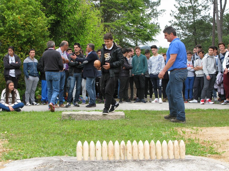Segundo a propia Adela Mirás explicou aos alumnos, trátase dun deporte ancestral que se retrotrae a Idade de Pedra e do que hai testemuña en todo o mundo, polo que a teoría de que provén dos celtas está actualmente descartada. No Val Miñor practícase especialmente, levando os propios emigrantes este xogo popular a países como Uruguay e Arxentina, cos que actualmente se compite.