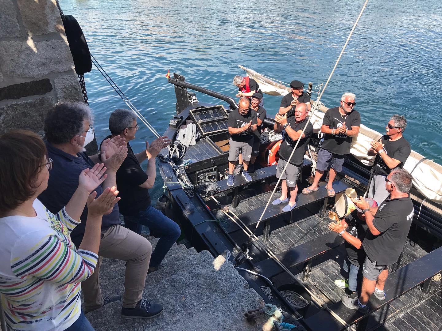 O recibimento que o pobo da Guarda brindou esta tarde ao “ Piueiro” ao seu regreso do Festival de Pasaia, despois dunha viaxe de máis de 900 millas, non será esquecido facilmente polos 11 tripulantes da embarcación tradicional que viviron estas semanas o que xa cualifican como “unha das mellores experiencias da nosa vida”. Familiares e veciños, entre os que se atopaba o alcalde da Guarda, Antonio Lomba e outros membros da corporación municipal, saudaron a chegada do volanteiro, que volveu a casa tras case un mes de periplo no que non faltaron os sustos, como a grave avaría no motor que lles obrigou a realizar unha parada técnica de varios días en Malpica.