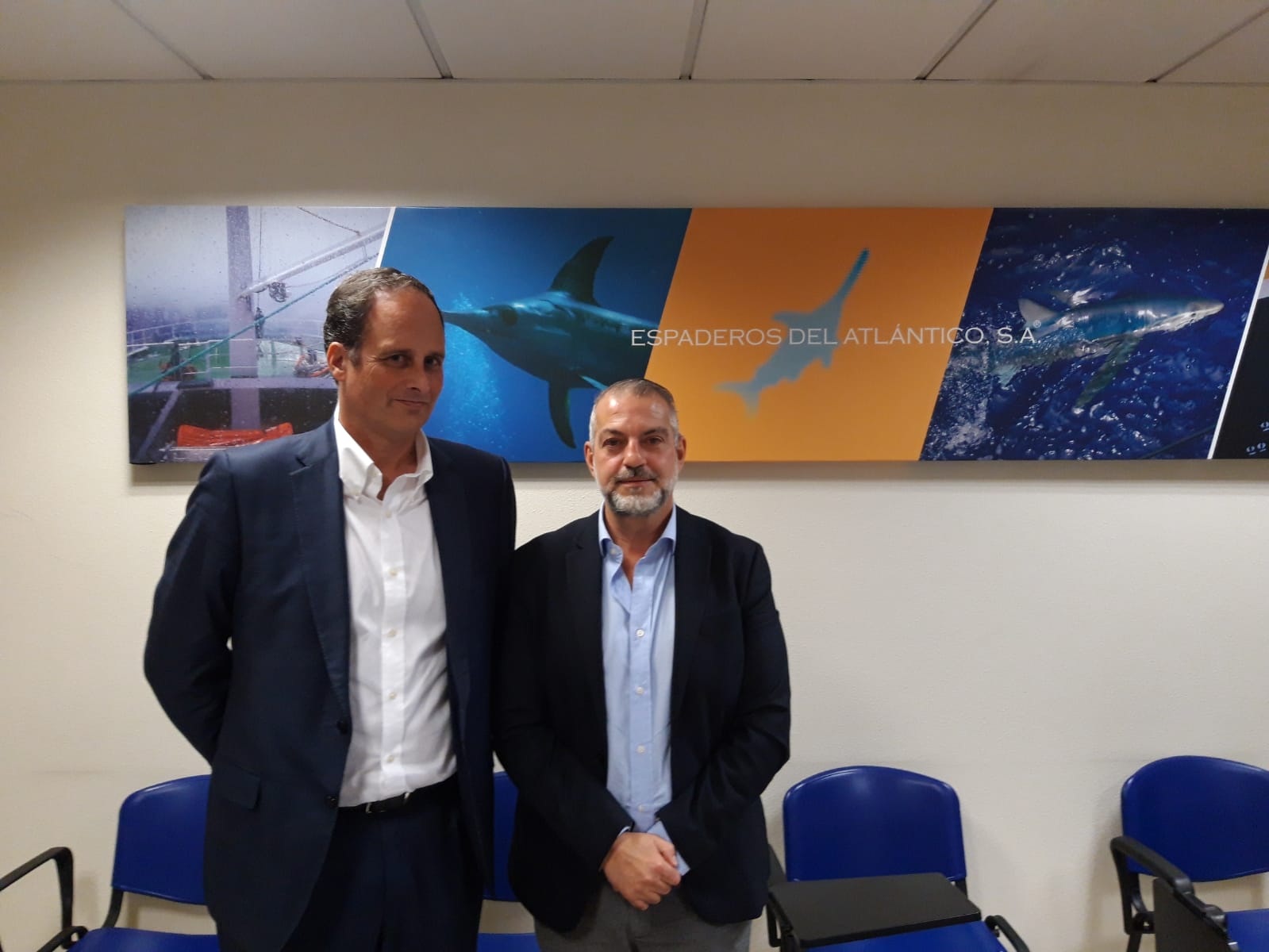 O presidente da Autoridade Portuaria de Vigo, Carlos Botana, reuniuse, nas súas instalacións no Porto Pesqueiro, co director xeral de ESPADEROS DO ATLANTICO S.A. e presidente da Asociación Nacional de Empresas Comercializadoras de Especies Altamente Migratorias (ANECTEAM), Emilio Martínez Cadilla, co que acordou a firma dun convenio de colaboración para promocionar a marca FIP BLUES, un proxecto de mellora das pesqueiras de Peixe Espada e Tintorera promovido por catro Organizacións de Produtores Pesqueiros (OPP7-Burela, OPROMAR, ORPAGU e OPNAPA) e 14 empresas que integran ANECTEAM.