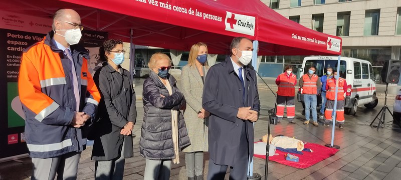 Conscientes de que a actuación nestes casos e con medios idóneos condiciona o prognóstico en canto á recuperación da vida e á minimización das posibles secuelas, o Conselleiro de Sanidade e presidente da Fundación Pública Urxencias Sanitarias de Galicia-061, Julio García Comesaña; o presidente da Autoridade Portuaria de Vigo, Jesús Vázquez Almuiña; e a súa homóloga en Cruz Vermella en Galicia, Carmen Colmeiro, ademais doutras autoridades sanitarias, das Forzas e Corpos de Seguridade do Estado, económicas e sociais da cidade, participaron esta mañá na presentación do proxecto “Porto de Vigo, Porto Saudable”, enmarcado nun acordo de colaboración subscrito entre a Consellería de Sanidade e a Autoridade Portuaria de Vigo co obxectivo de “ cardioproteger” o Porto de Vigo.