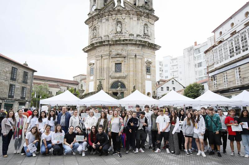 135 rapazas e rapaces de 4º da ESO de Pontevedra, Redondela, Tui, Moaña e Gondomar concentráronse na Praza da Peregrina para vender os produtos creados polas cooperativas nadas ao amparo da 7ª edición do programa e centradas na natureza, ecoloxía e cultura