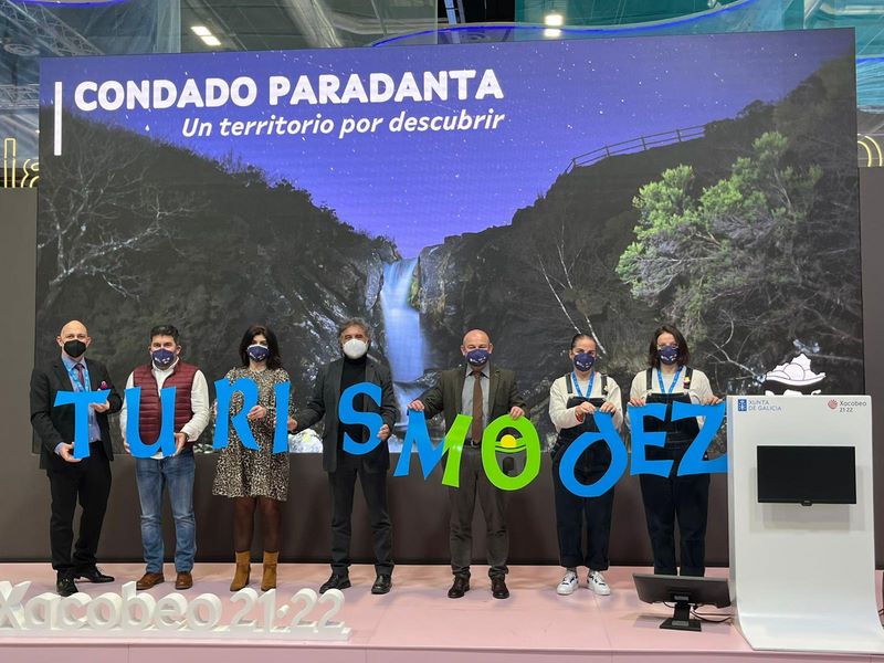 A presentación correu a cargo do presidente do GDR Condado Paradanta, Pablo Castillo, alcalde de Covelo, a quen acompañou o vicepresidente e rexedor das Neves, Xosé Manuel Rodríguez e empresarios da comarca. Ademais, tamén interveu no acto Nava Castro, directora de Turismo de Galicia, quen destacou outras das calidades do xeodestino como destino turístico: as festas de interese e a gastronomía (lamprea, rosquilas, requeixo, xamón…) sen esquecer a posta en valor de todo o que se está facendo no territorio, de maneira colaborativa coas institucións públicas e do sector privado.