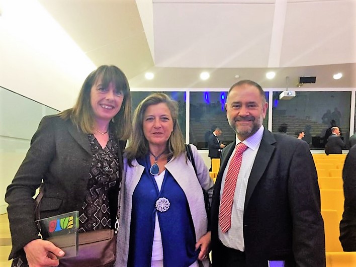 Teresa Pedrosa, que se trasladou a Santiago de Compostela para asistir a esta sesión, xunto cos premiados.