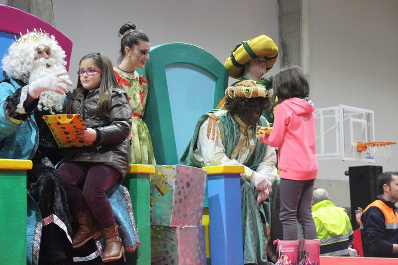 Tras o percorrido polas rúas baionesas, as súas maxestades de oriente dirixíronse ao Pavillón de Deportes Municipal onde lles estaban esperando un gran número de nenos.
