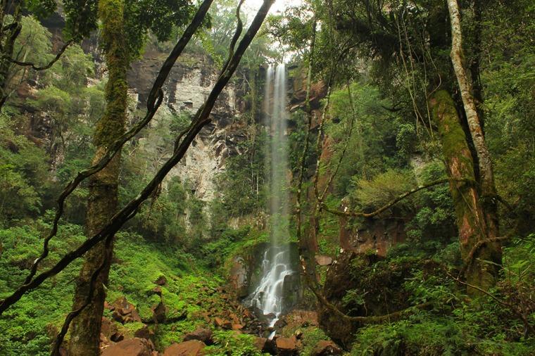 O visitante necesitará só un dos seus sentidos para atopar o inicio do salto: entre os trinos das especies de paxaros que habitan esta selva virxe, poderá oír o constante ronroneo do torrente precipitándose.
