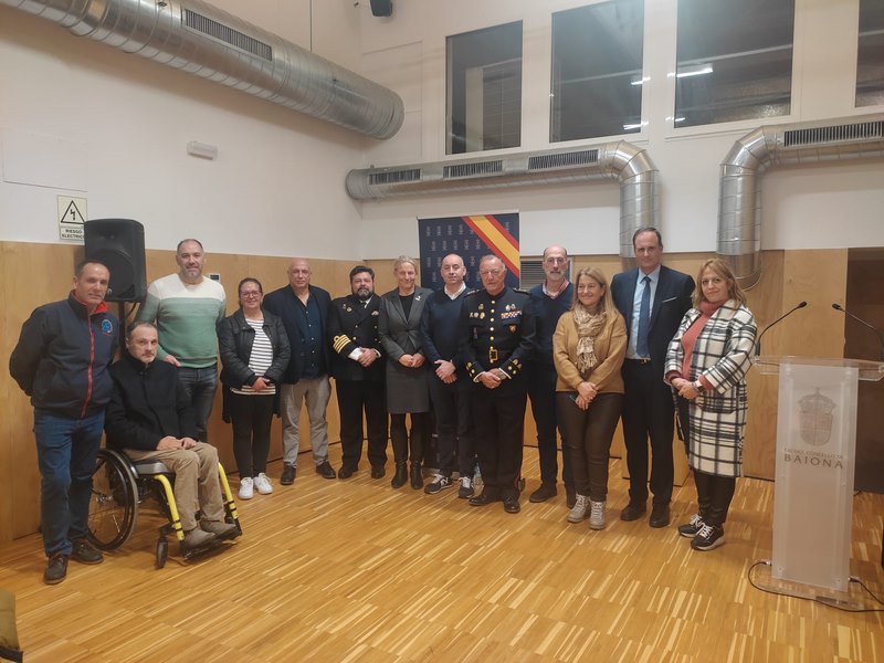 Na fotografía o coronel de Infantería de Mariña, D. José Cánovas García; o presidente da Autoridade Portuaria de Vigo, Carlos Botana; Susan Steele, directora da Axencia Europea da Pesca, con sede en Vigo; o Alcalde de Baiona, Jesús Vázquez Almuiña, o Concelleiro de Cultura, Policarpo Vilar Misa e outros concelleiros do equipo de goberno.