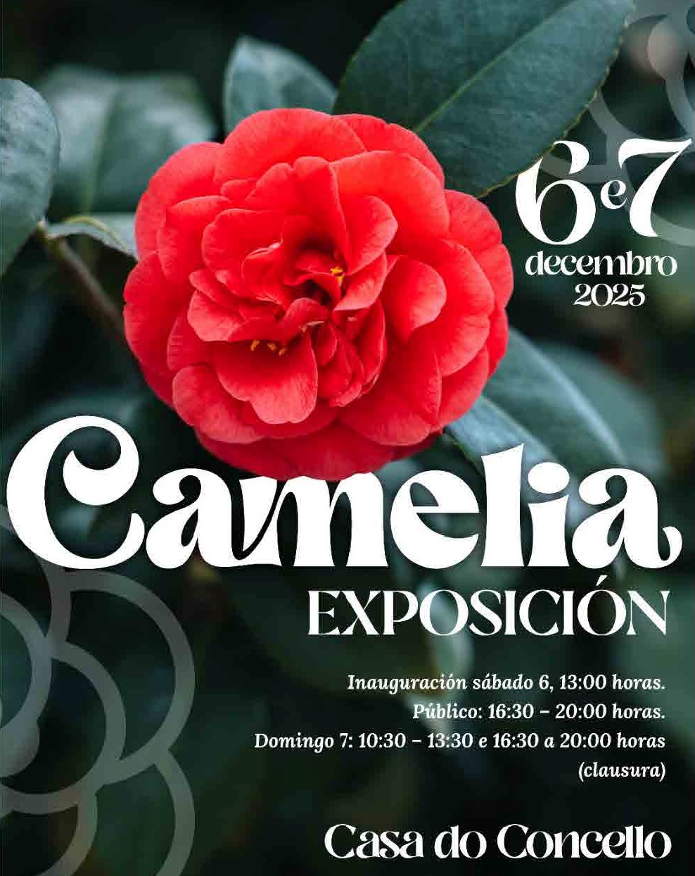 - 12:00 h – Inauguración da exposición “A Camelia, flor de galegas e galegos” na Praza da Música.
