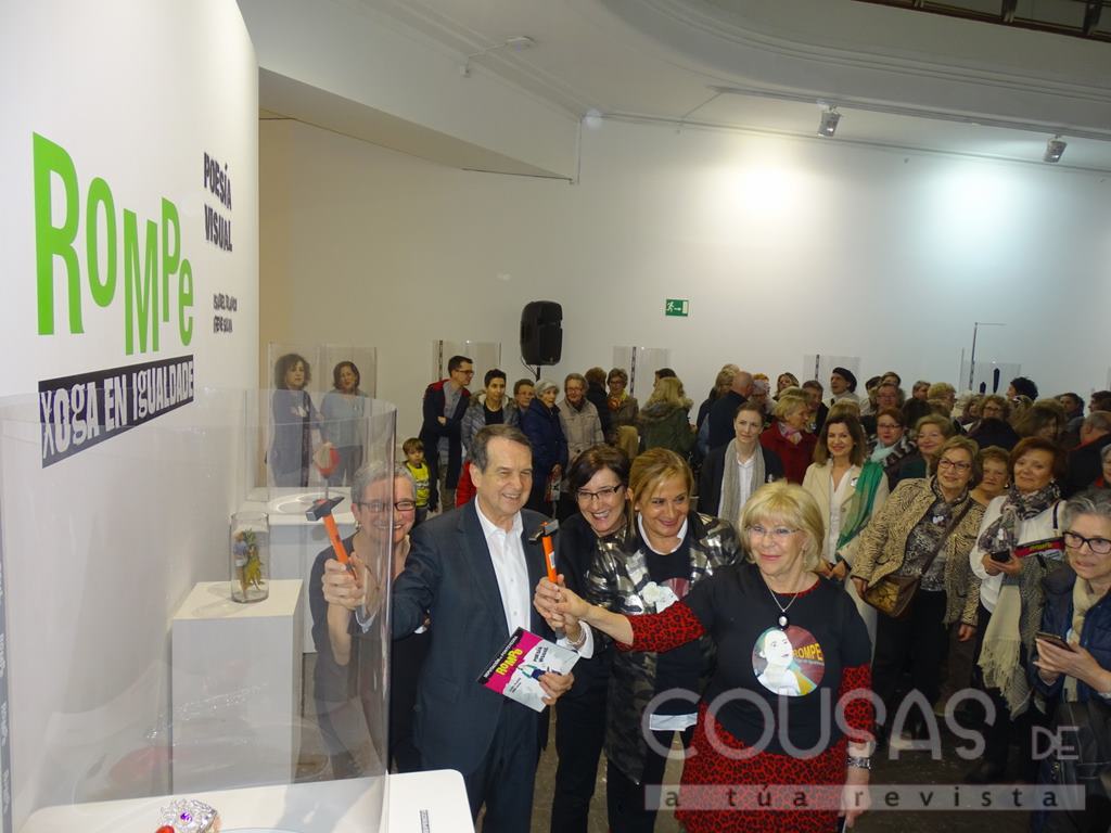 A presidenta da Deputación de Pontevedra, Carmela Silva, e o alcalde de Vigo, Abel Caballero, inauguraron onte na Casa das Artes de Vigo a exposición “Rompe. Xoga en Igualdade” que poderá visitarse ata o vindeiro 13 de maio na cidade. Xunto a eles estiveron a deputada de Igualdade Isaura Abelairas e as artistas da mostra, Isabel Blanco, Irene Silva e Noemí Chantada.